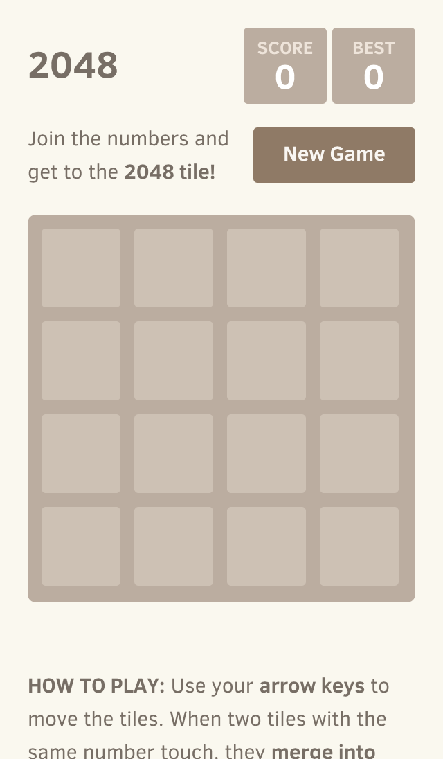 Observação: Esta é uma versão do 2048. Você pode jogar no celular em http://git.io/2048. Outros aplicativos ou sites são derivados ou falsos; use com cautela.